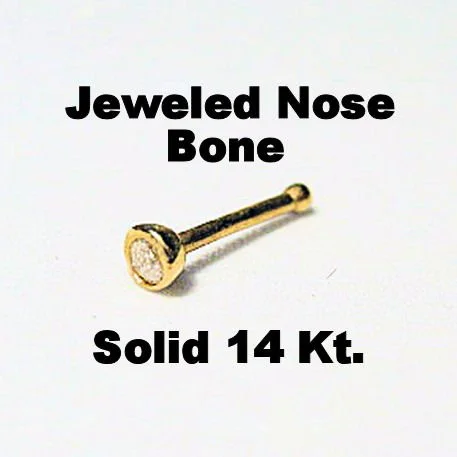 Solid 14Kt. Gold Jeweled Nose Bone w Bez Set Gem