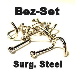 20ga. Surg.Steel Nose Screw w 2.5 m Pronged Set Gem.