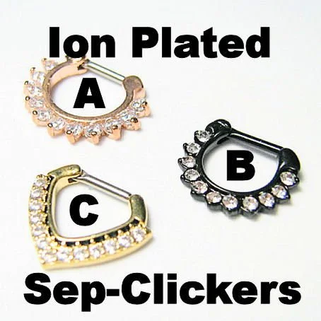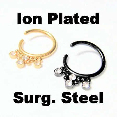 16ga Bar, 316L Surg. Steel , Ion Plated, Gemmed Septum Clickers.
