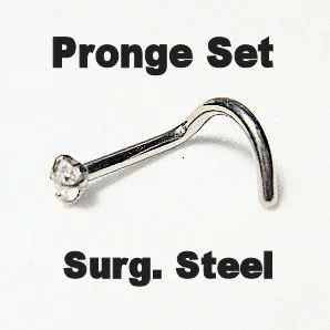 18ga 316L Surgical Steel Nose Screw w Pronged Set Gem, ** Clear Gem Only .