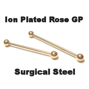 Rose Gold Plated over 316L Surgical Steel Industrial Barbell w 5m Ball.